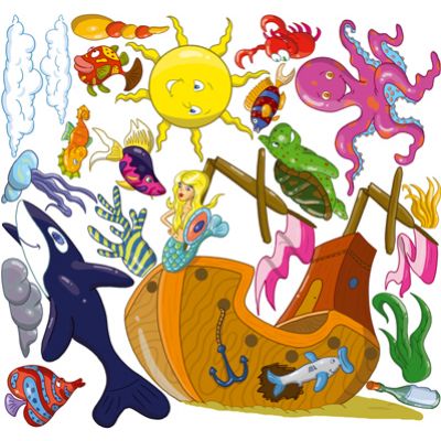 Zestaw średnich naklejek (125 x 100 cm) do aranżacji wnętrz to świetny pomysł na dekorację pomieszczeń dla dzieci