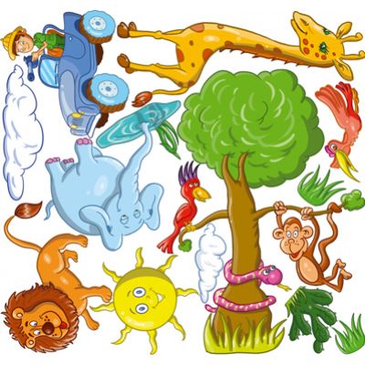 Zestaw średnich naklejek (125 x 100 cm) do aranżacji wnętrz to świetny pomysł na dekorację pomieszczeń dla dzieci