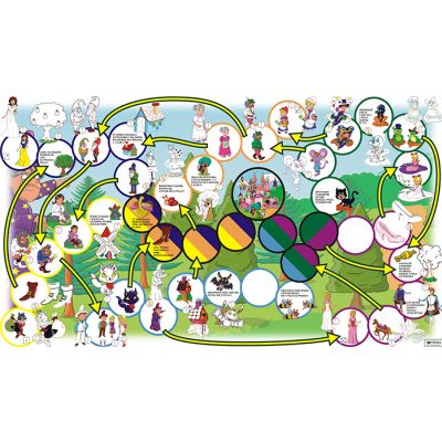Postacie z bajek zgubiły się w magicznym lesie. Pomóż im trafić do ZAMKU BAJEK i odzyskać kolory, które ukradła im zła Wiedźma.